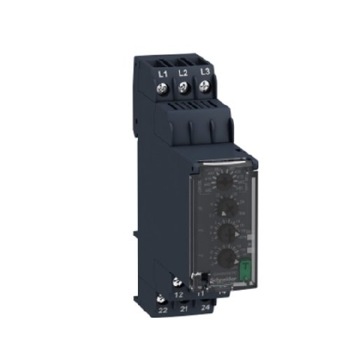 This Harmony RM22-TR relay allows monitoring of phase and undervoltage/overtage in 3-phase networks.
